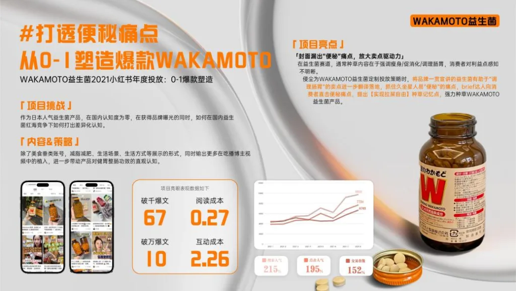 任何成功的营销均始于清晰的策略定位。侵尘团队在接手WAKAMOTO项目之初,便明确定义了品牌的核心目标:提升产品的曝光度与知名度,并围绕“益生菌”这一细分赛道展开深度布局。